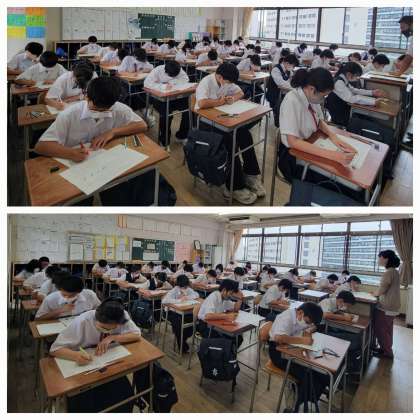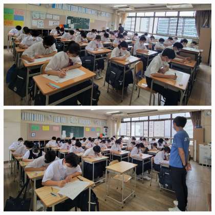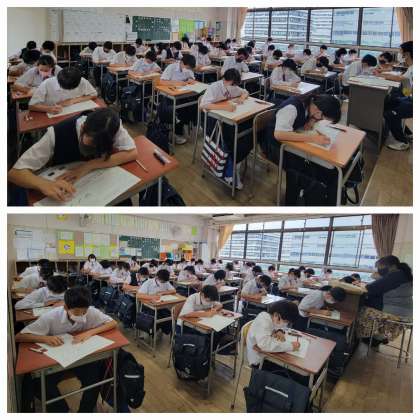 本日も朝から暑さが残り、午後からは久しぶりに晴れ間がみえる日となっています。本日から期末テストが始まりました。皆さん、真剣な表情でテストに臨んでいます。
