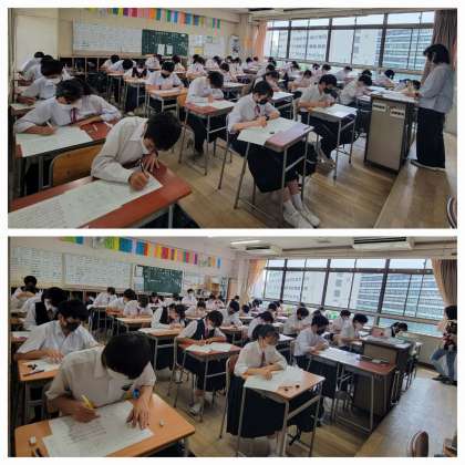 本日も朝から暑さが残り、午後からは久しぶりに晴れ間がみえる日となっています。本日から期末テストが始まりました。皆さん、真剣な表情でテストに臨んでいます。
