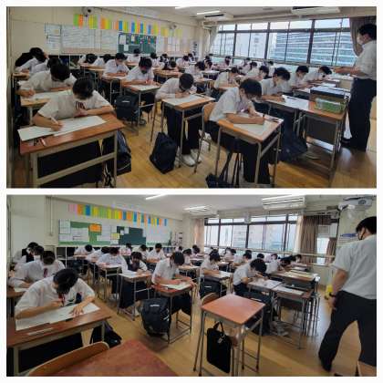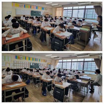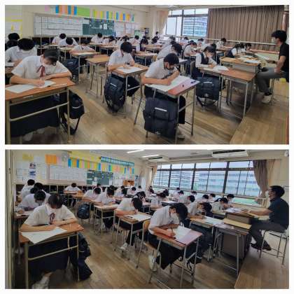 本日も朝から暑さが残り、午後からは久しぶりに晴れ間がみえる日となっています。本日から期末テストが始まりました。皆さん、真剣な表情でテストに臨んでいます。