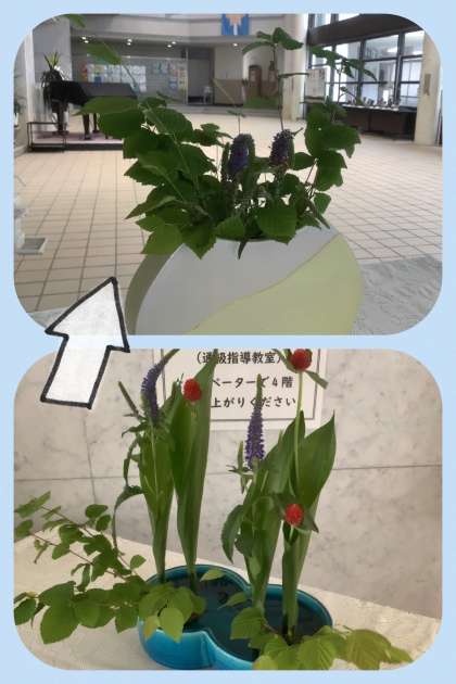 玄関のお花を生け替えていただきました。いつもありがとうございます。梅雨入りし、蒸し暑い日が続いています。くれぐれも健康に留意して過ごしましょう。
