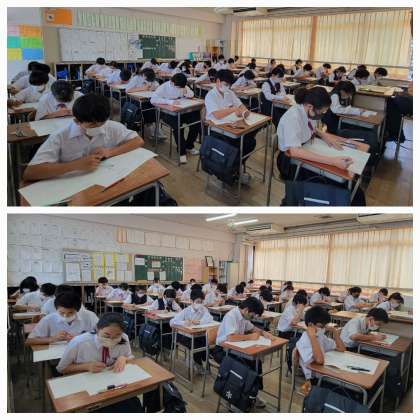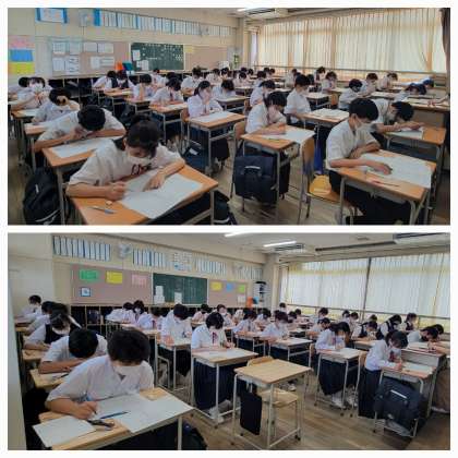 本日も朝から暑さの感じる日となっています。さて、本日、期末テスト2日目のようすです。皆さん、頑張ってください。