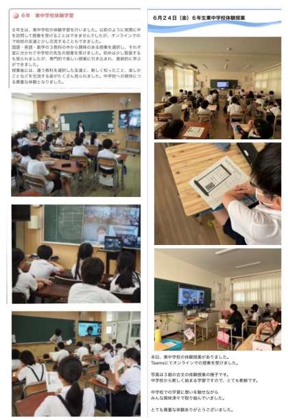 初のオンライン小中連携を終えることができました。4小学校の6年生の児童の皆さん、いかがでしたか?6年生の皆さんが、中学校に入学することへのワクワク感を膨らませ、不安を少しでも和らげることができたらと、児童数が増える中で、しかもコロナ禍でありましたが、校区の4小学校の先生方にご理解とご協力いただき、企画から調整、運営・実施と至りました。ご理解とご協力をいただきました皆さま、ありがとうございました。
