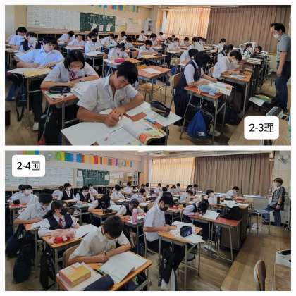 本日、大阪で暑さ指数「厳重警戒」「危険」レベルになるとのことでした。明日も引き続き暑さの対策をとりながら教育活動を進めています。さて、本日の授業のようすです。換気をしながらエアコンをかけて授業を行っています。
