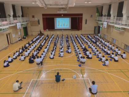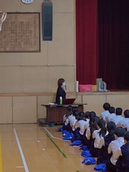 3年生は、5限目、病院にお勤めされている看護師さんを講師としてお招きし、性教育を行いました。今日は、お昼以降も暑い気温が続いていますが、空調を利かした体育館で、生徒たちは皆集中して、命・身体に係わる貴重なお話を伺うことができました!