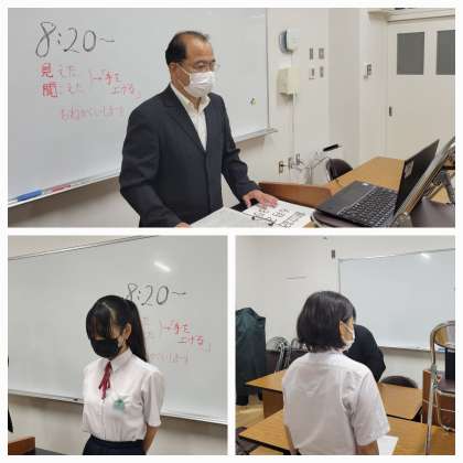 本日も前回に引き続き、映像配信による全校集会を行いました。期末テストの見直しの大切さと来年度から女子の標準服にスラックスを選択できるようになる話がありました。在校生の皆さんも希望すれば2学期から着用できるようになります。玄関ホールにも展示しています。