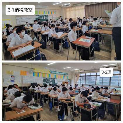 本日も台風の影響で、雨が降っています。湿度が高いので、むし暑さを感じる日となっています。さて、本日の授業のようすです。皆さん、頑張ってください。
