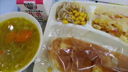 今日のパンはおさつパンでしたね。皆さんは給食に出てくるパンの中でどれが好きでしょうか。私はおさつパンが一番好きですね。おさつが入って甘い口当たりに、ずっしりとしたボリューム。なかなか食べ応えがあります。