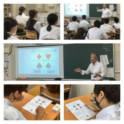 3年生が、クラスごとに自分のことを客観的に見るために、SPトランプを使ったワークショップを行いました。カードの結果は全てではありませんが、自分のことを客観的に見ようとすることのできた時間になったのではないでしょうか。今日の結果はあくまで自分の一面です。進路を決める際の一助にしてください。