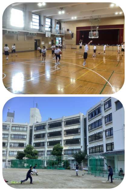 7月7日 七夕の朝。週末に行われる大会に向けて、男子バスケットボール部と野球部が朝練に励んでいます。一人ひとりが課題意識を持ち、黙々と基本練習を繰り返しています。一方で、部長は、部長会議の取り組みでの、朝の活動です。