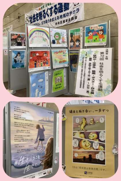 中央区役所1階において、社会を明るくする運動の一環として、ポスターと作文が掲出されています。期間は7月29日(金)まで。お時間がありましたら、ご参観いただください。また、引き続き、社会を明るくする運動にご理解とご協力をお願いします。