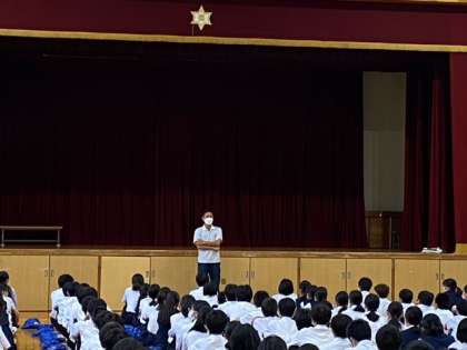 1学期最後の学年集会です。1学期を振り返ってどうですか。懇談会も終わった人もたくさんいると思いますが、その中での振り返りや反省を活かして、今週を迎えているでしょうか。夏休みの過ごし方も含めて、規則正しく、充実した時間を過ごすことを心がけましょう。