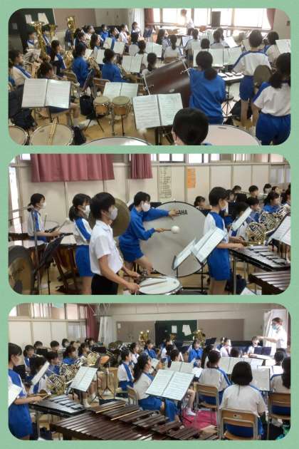 大阪府吹奏楽コンクールが近づいてきました。音楽室の机を廊下に出して、本番に向けての合奏です。