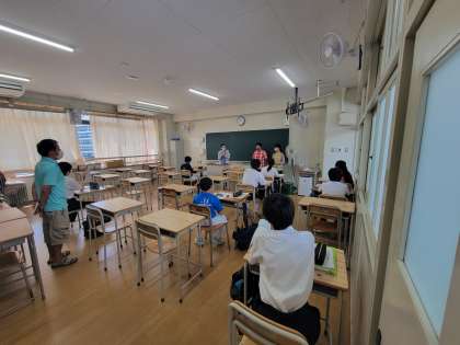 今日から各学年で夏休みの学習会を行っています。参加する皆さん、頑張ってください。