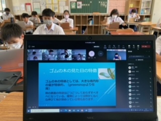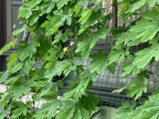 保健室前にはゴーヤを使った緑のカーテンができています。