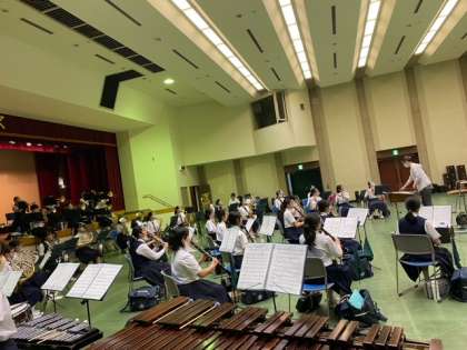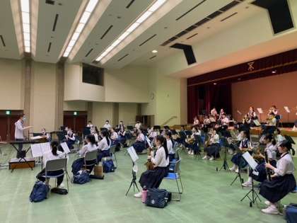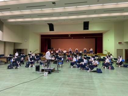 7月27日(水)の吹奏楽コンクール本番に向けて、感染症対策を行いながら練習に励んでいます。
