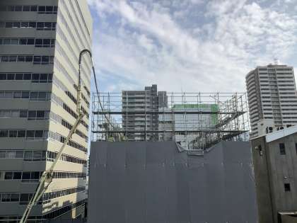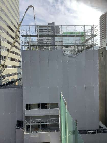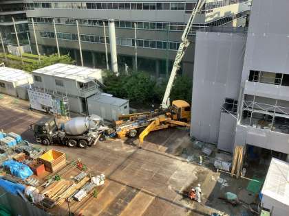 夏休みに入り、1学期の授業中にはできなかった「大きな音の出る工事」が始まりました。校舎は6階床面へコンクリートが注入されているようです。6階の壁面も鉄筋が組まれています。新校舎は6階建てです。下層階では内部工事も始まっています。完成が待ち遠しいです。