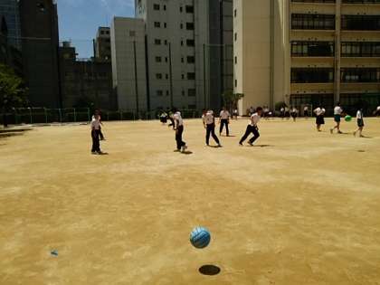 めちゃくちゃいい天気です。 日光がじりじりと肌に突き刺しますが、東中生は関係ないようで、元気に昼休みを過ごしています。しかし風は爽やかです。