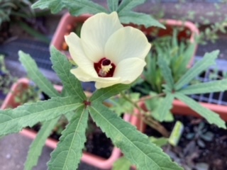 今日はようやくオクラの花が咲きました。去年は枯らしてしまったので、今年は収穫まで頑張って育てたいですね。