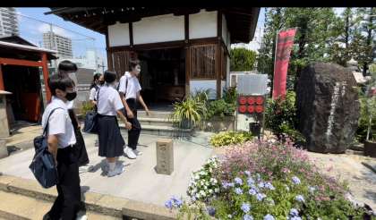 生徒会役員が、本日、10月の文化発表会に向けて校区の玉造校地域を探索しました。
