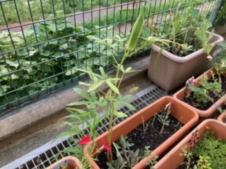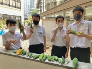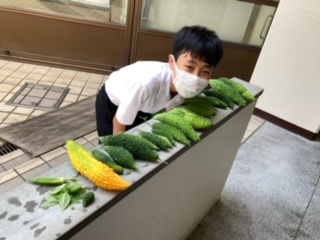 オクラが収穫できました。「こうやってできるんや!」と驚きの声でした。ゴーヤもたくさんとれて大満足です。