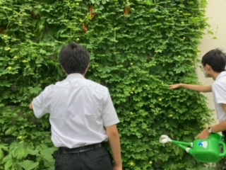 学校には、新しいゴーヤの花がどんどん咲いています。