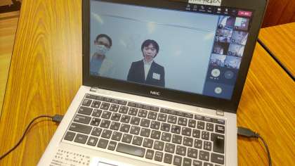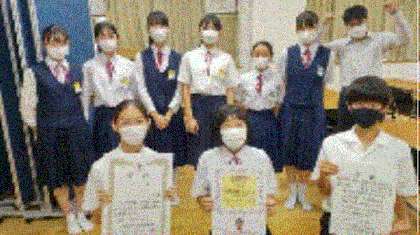 写真は始業式の配信の様子と、夏休みの部活動で入賞した部の代表の生徒たちです。今日は、吹奏楽部、ソフトテニス部、剣道部の順番でした。表彰状の披露は来週の集会でも続きます。次はどの部活動でしょうか。楽しみにしておいてください。