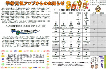 2学期は体育大会などの学校行事も多く、夏の疲れも出やすい時期です。しっかりと健康管理(特に充分な睡眠時間の確保)を心がけましょう。