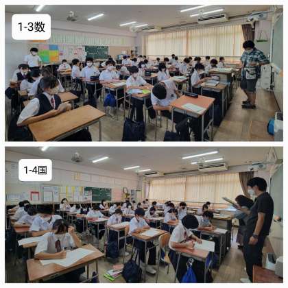 本日も朝から少し雨が降り、過ごしやすい気温となっています。さて、本日の授業のようすです。実力テストの返却も行われています。