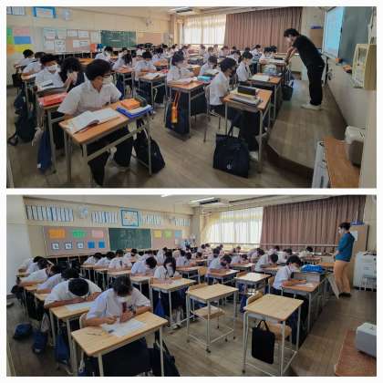 本日は、昨日の雨も上がり、湿度は高いものの過ごしやすい日となっています。しかし、時折日が差すとまだまだ暑さを感じます。さて、本日は午前中のみの授業となっています。皆さん、頑張ってください。