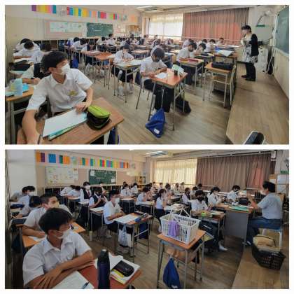 本日は、昨日の雨も上がり、湿度は高いものの過ごしやすい日となっています。しかし、時折日が差すとまだまだ暑さを感じます。さて、本日は午前中のみの授業となっています。皆さん、頑張ってください。
