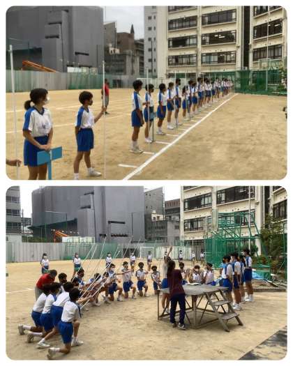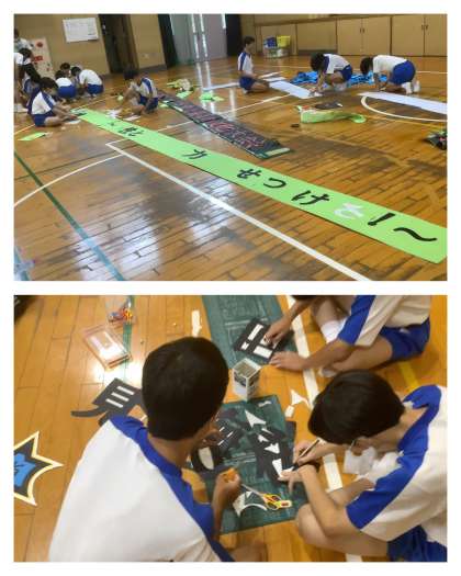 体育大会実行委員の活動が充実しています。今日も手際良く、グランド整備をした後、グランドでは開会式の練習、体育館ではスローガンの作成を進めています。