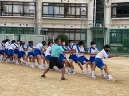 綱引きの予選が行われました。「がんばれー!」「ひっぱれー!」応援の声が聞こえます。