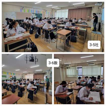さて、本日の授業のようすです。体育の時間には、リレーのバトン受け渡しや応援団の演技の練習などを行っています。