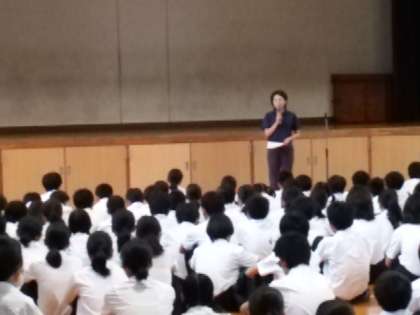 まず、莚平先生から体育大会実行委員会を立ちあげるお話しがありました。中学校の大きな行事である体育大会を今までよりもっといいものにするために、生徒たちの力を結集させようというものです。熱い心を持ち、やる気のある人はぜひ行動に移してください。