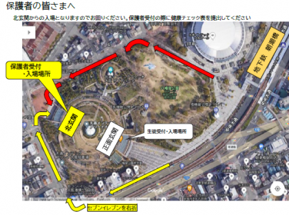 感染症対策・拡大防止の取組等のため、生徒の入場口(体育館南玄関)とは異なりますのでご注意ください。