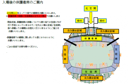 ・保護者の皆様の入退場は 体育館北玄関とします。