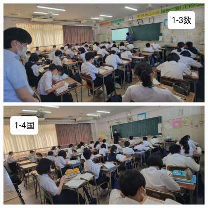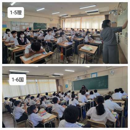 本日も日差しが強くまだまだ暑さの残る日となっています。この暑さは、今週いっぱい続くようです。さて、本日の授業のようすです。あさっての体育大会に向けて頑張っています。