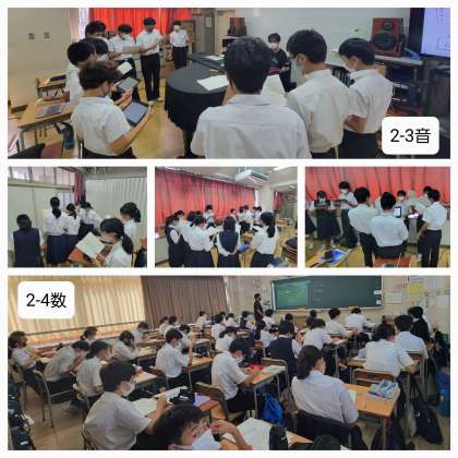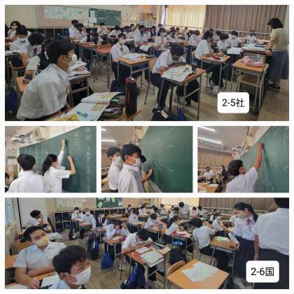 本日も日差しが強くまだまだ暑さの残る日となっています。この暑さは、今週いっぱい続くようです。さて、本日の授業のようすです。あさっての体育大会に向けて頑張っています。