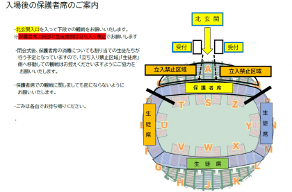 ・「立入禁止エリア」「生徒席」側へ移動しての観覧はお控えください。