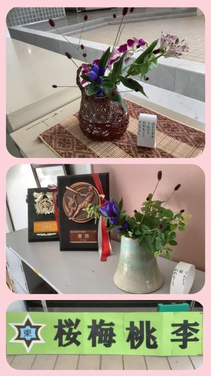 さて、ホールと職員室前のお花を、ホールには「ほととぎす・りんどう・われもこう・デンフォレ」、職員室前には「りんどう・萩・われもこう」に生け替えていただきました。いつも東中生のためにありがとうございます。草むらの虫の音に耳を傾け、生花を愛でると、移りゆく季節を感じます。