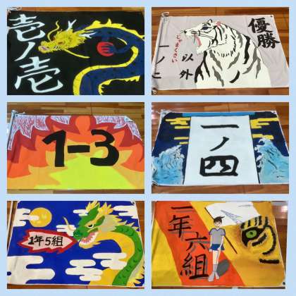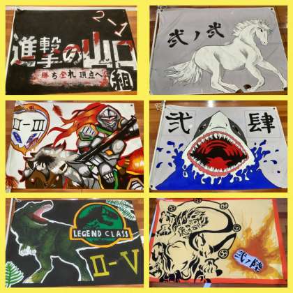 各クラスで創意工夫を凝らして作製した学級旗です!