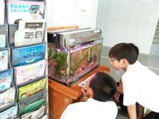 また、鯉の水槽をじっとみつめている生徒たちの姿もありました。
