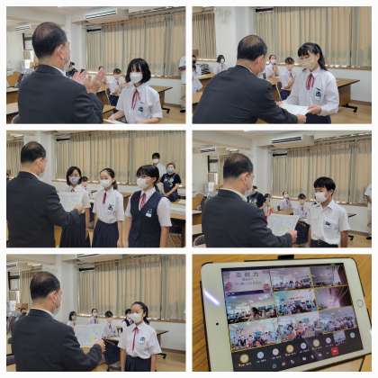今朝は、オンラインによる全校集会を行いました。本日も、書道をはじめ、大阪市中学校生徒理科研究発表会でもたくさんの賞を受賞し、校長先生から表彰伝達がありました。皆さん、おめでとうございます。