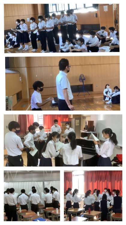 合唱コンクールに向けての3年生各クラスの練習の様子です。曲は「あなたへ〜旅立ちに寄せるメッセージ」。全てのクラスの選んだ曲が、同じ曲になりました。クラスごとに思いを込めて、クラスごとのカラーで歌います。
