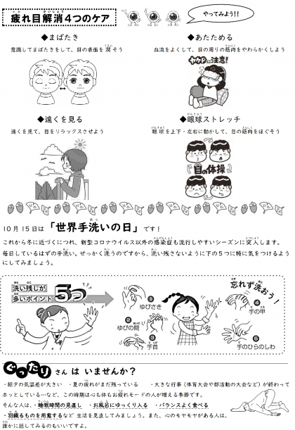 10月10日は「目の愛護デー」です〜ほけんだより(10月号)を掲載します