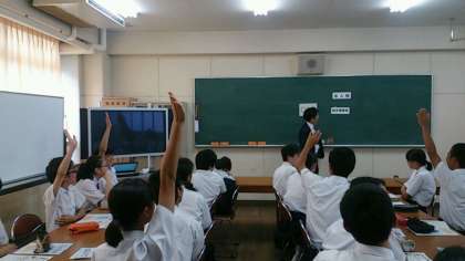 どんな種類の税金かあるか知っていますか?との問いかけに対して、たくさんの生徒が積極的に手を挙げて、答えていました。