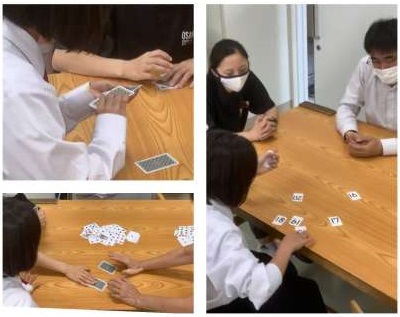 わかくさ学級では、「数」についての学習を、トランプや数が書かれたカードを使って、学習が進められました。今日は、特別に参観されている先生もゲームに加わり、ゲームの説明、カードのシャッフル・配布も生徒が上手に担うことができました。