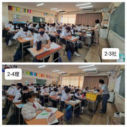本日は、朝は過ごしやすくなったものの、日中はまだまだ暑さを感じる日となっています。各学年は合唱コンクールの取組で音楽室から時おり歌声が聞こえてきます。さて、本日の授業のようすです。皆さん、頑張りましょう。