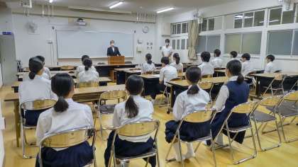 受け取った生徒たちには、コロナ禍の中、入学後の部活動スタートが遅くなって他の学年よりも活動期間が短かった3年生はもちろん、他校の3年生を上回って入賞した1・2年生もいました。ここまでの東中水泳部の伝統と、これからの活躍への期待とが融合した、非常に有意義な時間となりました。