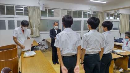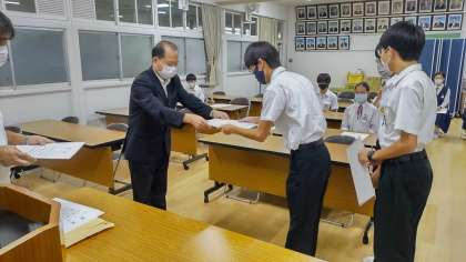 全校集会でも表彰はありましたが、活躍した部員が多く、いただいた賞状があまりにも多く、集会では代表のみの表彰になったため、校長先生から、直接、渡していただくことになりました。